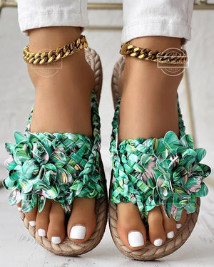 Slippers Women Ombre Floral Pattern Braided Casual Shoes Vacation Flat Holographic Braided Floral Pattern Toe Beach Flip Flops