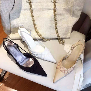 Socialite-style Beaded Quilted Pointed Toe French High Heels Summer New Silk Stiletto Heel Back Strap Sandals