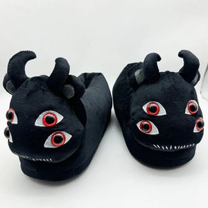 Spooky Halloween Ghostly Plush Slippers Highland Cow Rabbit Four Eyes Animals Shoes Indoor House Black Soft Funny Slipper Kids
