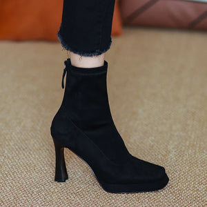 Square High Heel Women Ankle Boots Fashion Zippers Shoes Autumn Winter Square Toe Ladies Dancing Party Prom Shoes