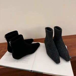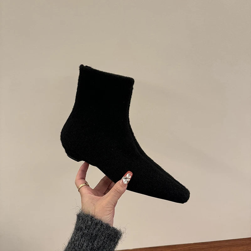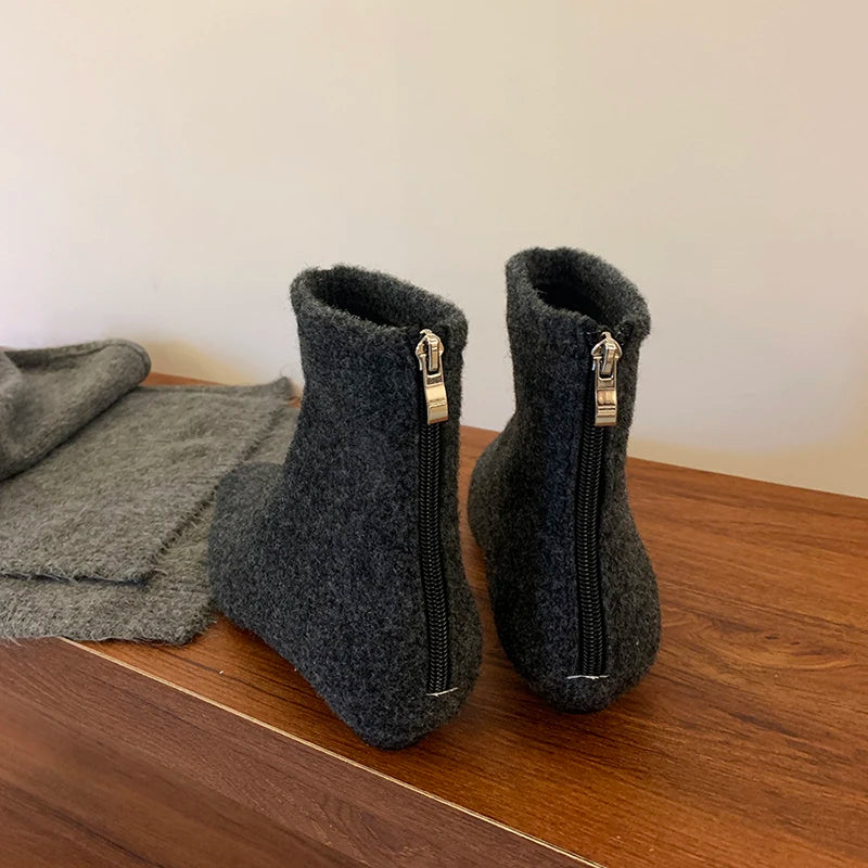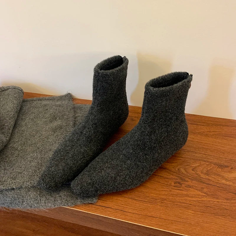 Street Style Square Toe Wool Women Ankle Boot Elegant Low Heel Shoes 2025 Spring Autumn Ladies Short Booties