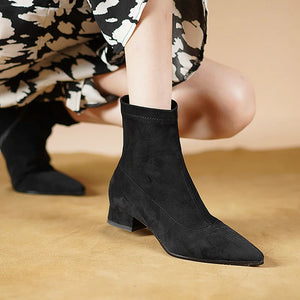 Suede Leather Women's Ankle Boots Elegant Point Toe Brown Black Short Boot Autumn Winter Shoes 2024 Western Brand Designer