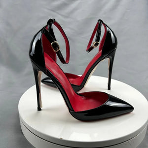 Summer Brand Ankle Straps Womens Sandals Red Insole 10 Cm Sexy Pointed Toe Pumps Matte Leather Ladies High Heels Size 32 33