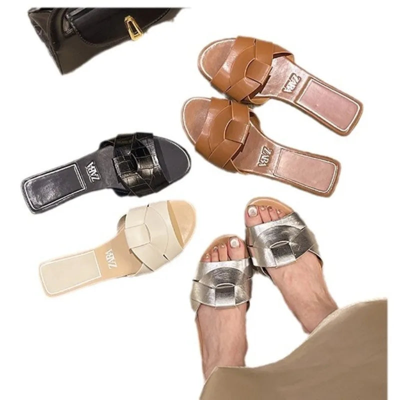 Summer Designer Women's Sandals, ZA Women's Slippers, Indoor Bathroom, Outdoor Walk, Flat Heeled Low Heeled Sandals