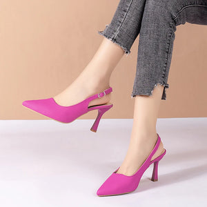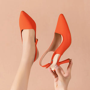 Summer High Heeled Sandals Pointed High Heeled Hollow Women's Shoes Buckle Fashion Rose Orange High Heeled Sandals