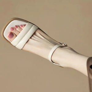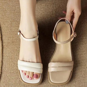 Summer New 2023 Square Toe Hollow Medium Chunky Heel Open Toe Sandals for Outerwear All-match Comfortable Fashion Women's Shoes