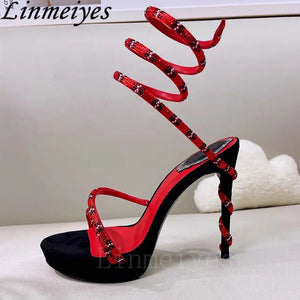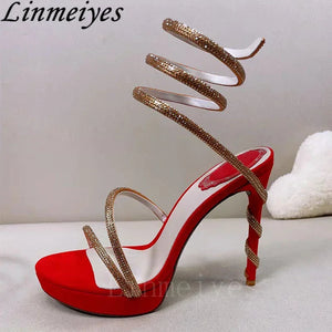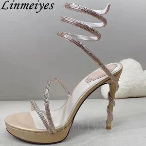 Summer Platform Sandals Woman Rhinestone Ankle Snake Twine Around Wedding Shoes Women High Heels Gladiator Sandals Women