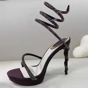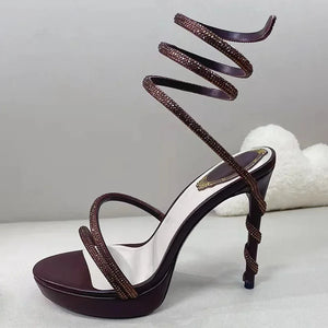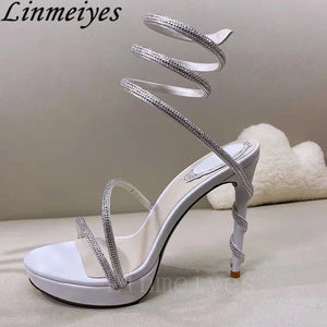 Summer Platform Sandals Woman Rhinestone Ankle Snake Twine Around Wedding Shoes Women High Heels Gladiator Sandals Women