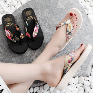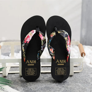 Summer Slippers Indoor House Woman Girls Casual Slippers Flip-flops Non-slip Satin Printing Vacation Beach Sandal Zapatos Mujer