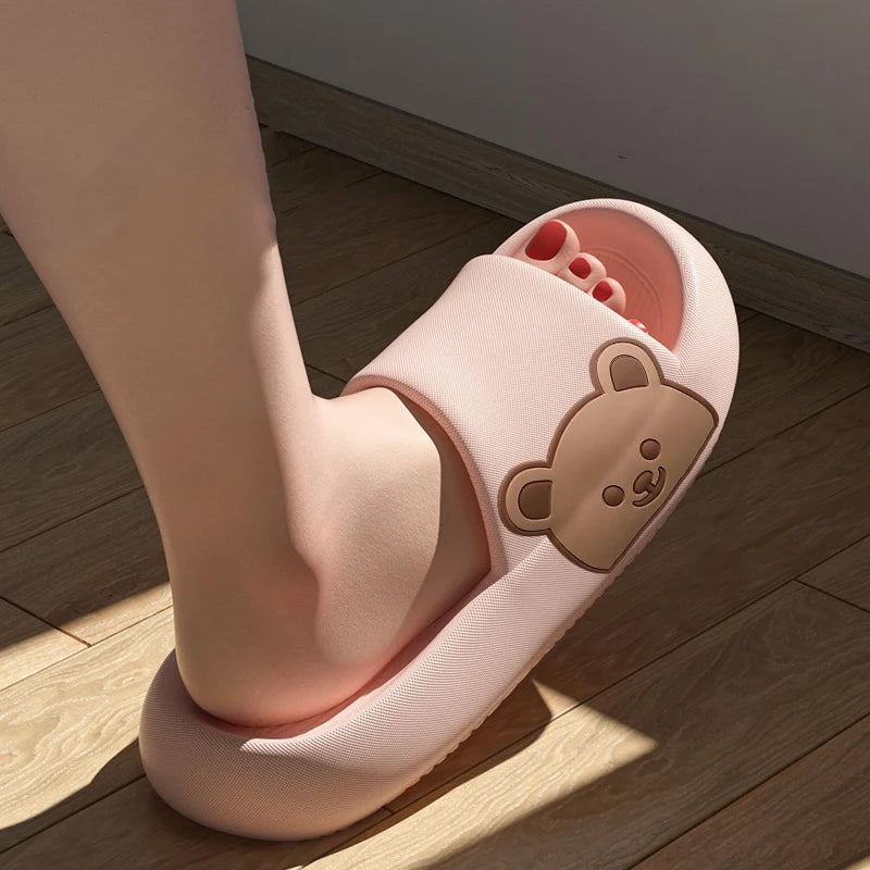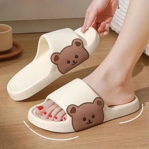 Summer Slippers Women Shoes Beach Slides Cartoon Bear Flip Flops Men'S Slipper Indoor Bathroom Anti-Slip Shoes Couple Sandals