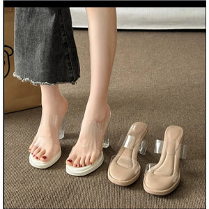 Summer Soft Platform Sandals for Women Fashion Transparent Pvc High Heel Sandalias Mujer 2024 New Clear Square Heels Slippers