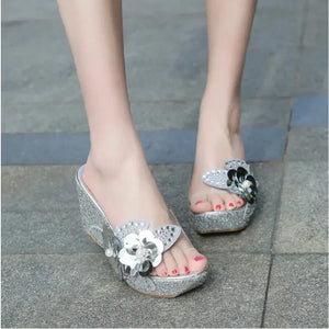 Summer Wedges Sandals Women Sexy Crystal Transparent High Heels PVC Slippers String Bead Platform Fashion Shoes