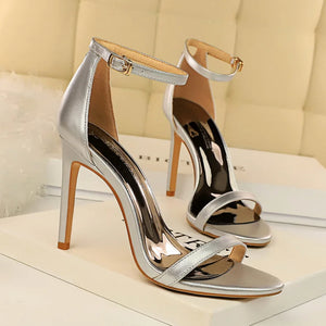 Summer Women 10cm High Heels Fetish Sandals Lady Gladiator Strap Leather Silver Sandles Fashion Platform Nightclub Party Shoes