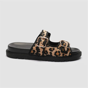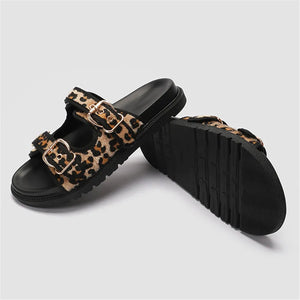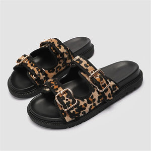 Summer Women Slippers Leopard Print Sandals Thick Sole Platform Shoes Woman 2025 Trend Buckles Ladies Beach Slides Big Size 43