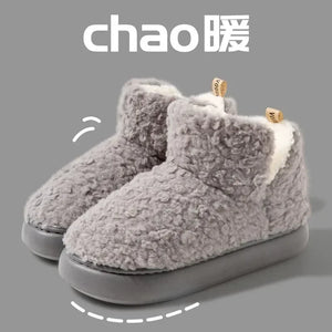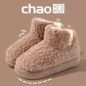 Thickened Plush Fur Warmth Household Snow Boots Cotton Women Slippers Home Boots Simple Solid Color Winter Fluffy Platform Shoes
