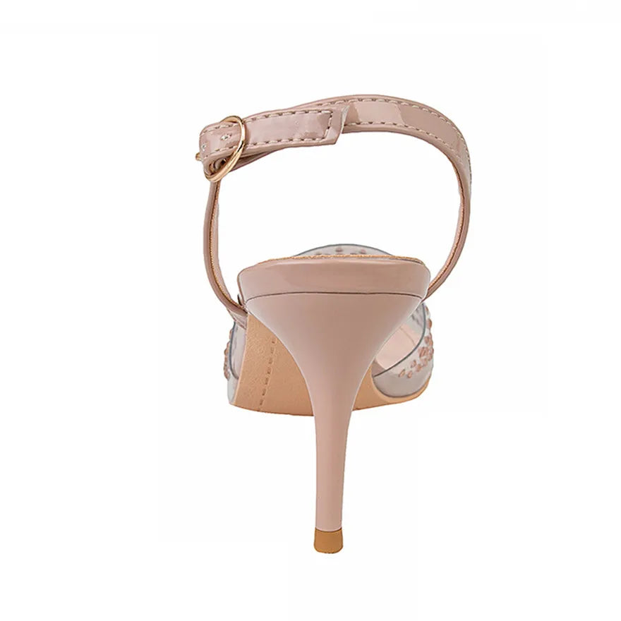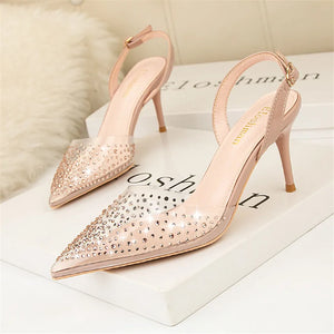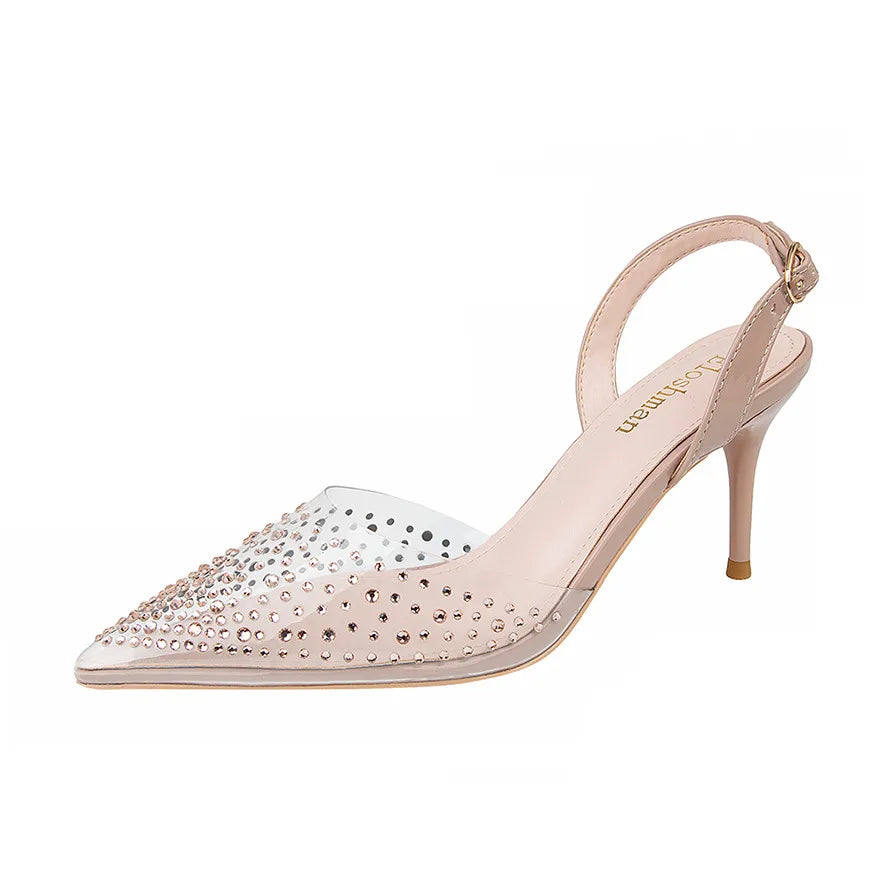 2025 Transparent Rhinestone Fashion Sandals For Women Back Buckle High Heel Shoes Pointed Toe Crystal Shallow Ladies Dress Pumps