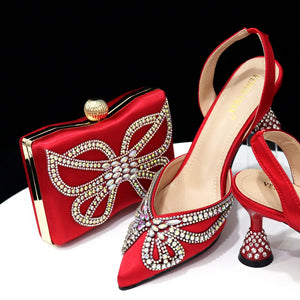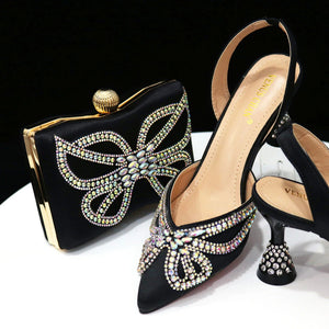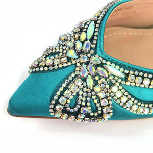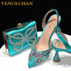 Venus Chan New Elegant Green Bling Bow Pointed Toe Pumps for Women 2024 Party italian Rhinestones shoes and bags matching set