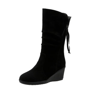 Vintage Faux Suede Wedge Ankle Boots for Women's 2024 Autumn Winter Warm Plush Flat Heels Short Boots Woman Slip on Cowboy Botas