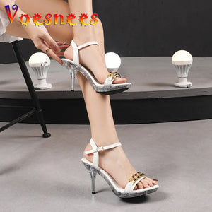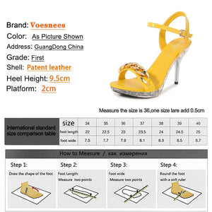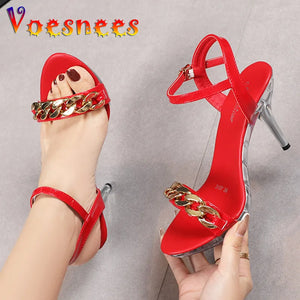 Voesnees High Quality Gold Chain Design Women Sandals Summer Beach Party Shoes Plus Size Transparent Platform 9.5CM Stilettos