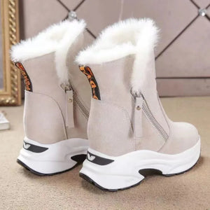 Wedge Shoes Leather Snow Boots Woman Winter Boots Warm Women's Shoes Mid-Calf Ladies Platform Booties