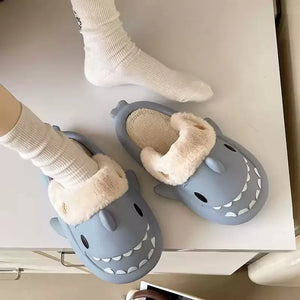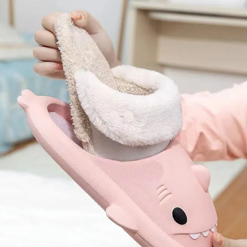 Winter Shark Slippers Couple Removable Liner Warm Cute Women Shark Slides Plush Cotton Flip Flops Men Indoor Cotton Flat Shoes