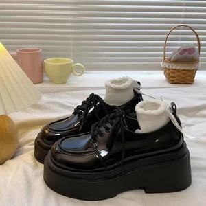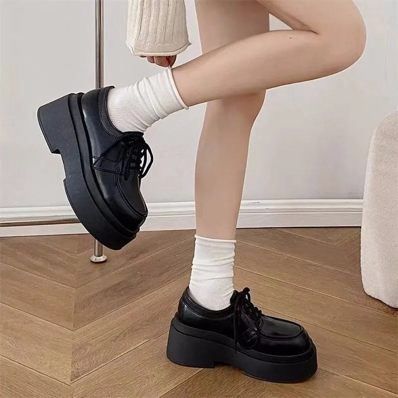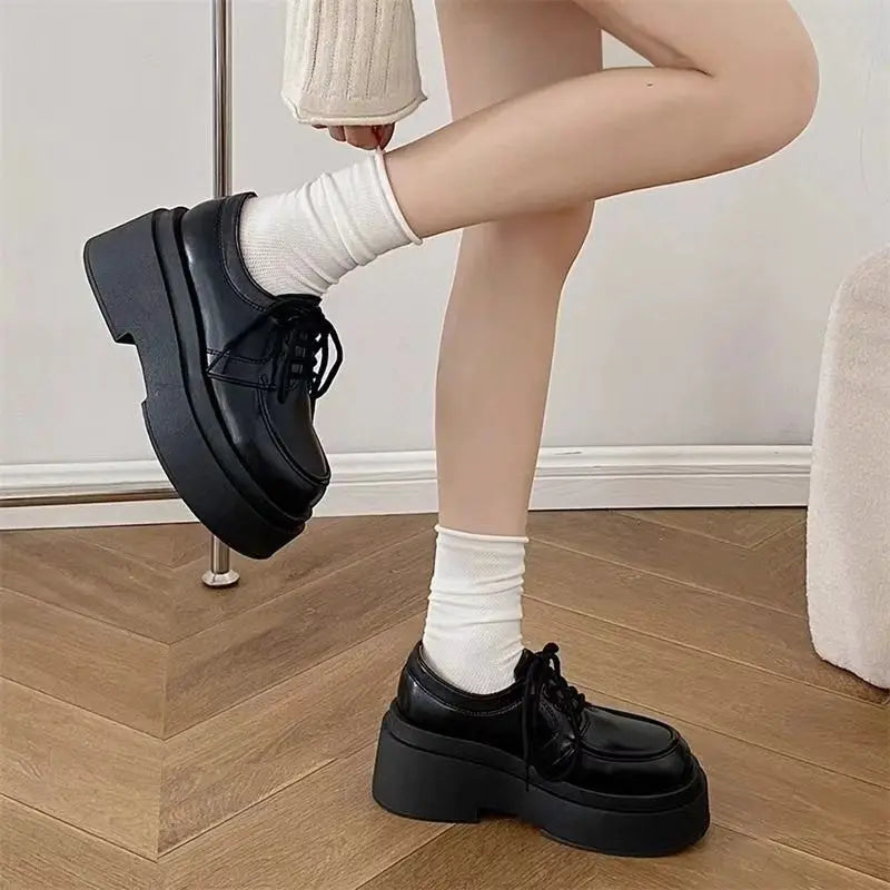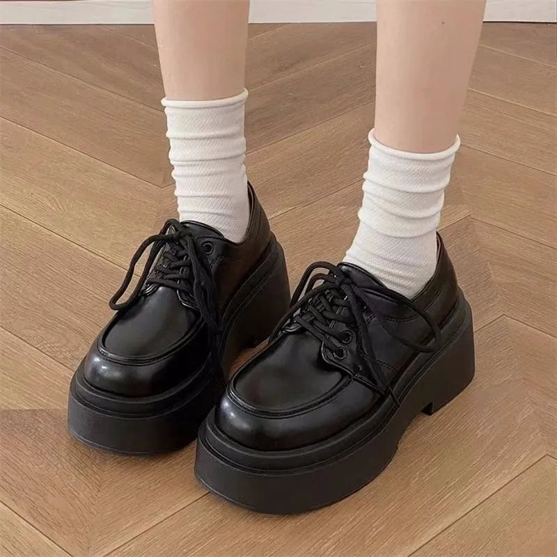 Winter Shoes Women British Style Oxfords Clogs Platform Female Footwear Autumn Preppy Leather New Retro Cross Creepers Dress