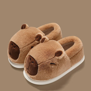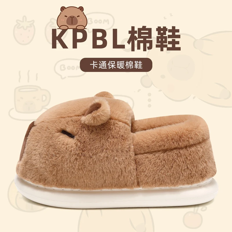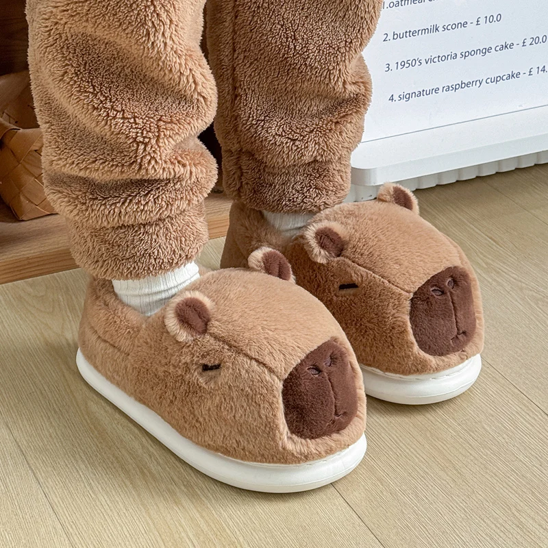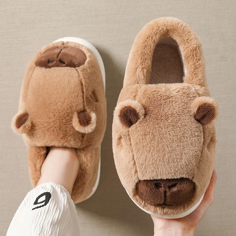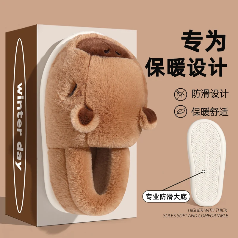 Winter Warm 3D capybara Cartoon Furry Women Plush Slippers Thick Furry Ankle Wrap Men Lady Couple Home Cotton Shoes