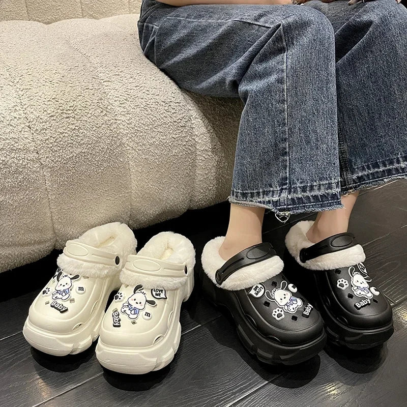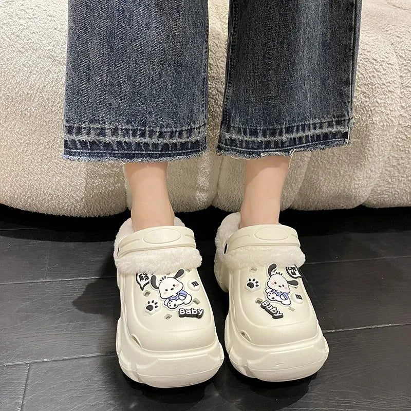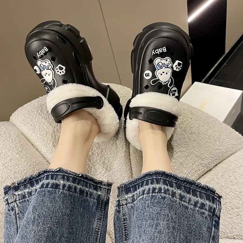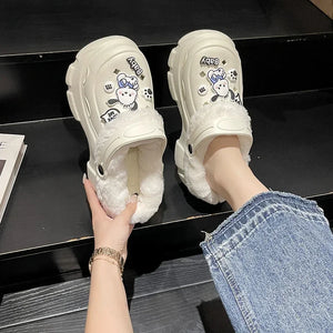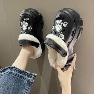 Winter Women's Closed Toe Plus Velvet Platform Slippers Keep Warm Increase Height Casual Clogs Shoes for Women Home Cotton Shoes