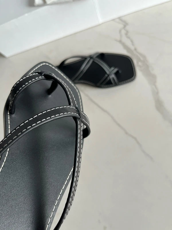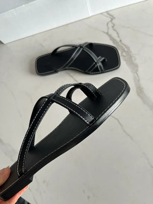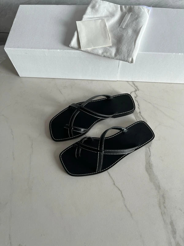 Withered Nordic Minimalist Cowhide Burgundy Slippers Women Clip Feet Flat Bottomed Sandals Fashion Elegant Cool Summer Shoes