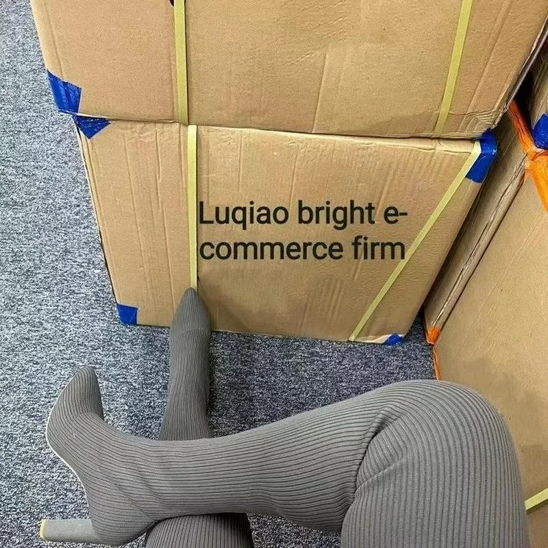 Woman Over The knee Boots Winter Thigh Knitted Elastic Socks Shoe Warm Sexy Stilettos Heels Pointed Long Boots 35-43 botas mujer