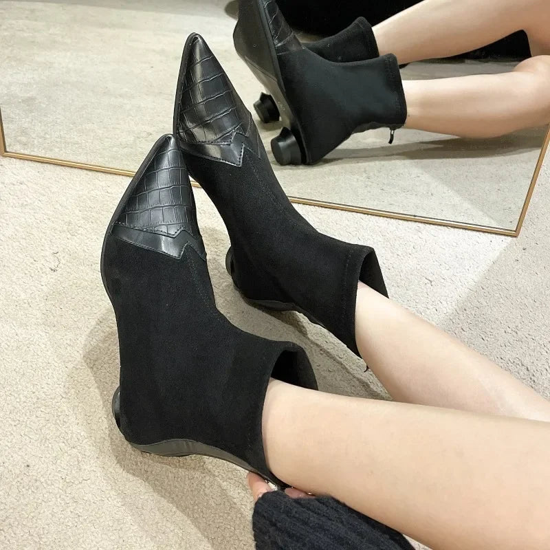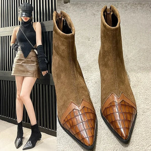 Women Ankle Boots Fashion Pointed Toe Short Booties Ladies Elegant Low Heel Shoes 2024 Spring Autumn Comfort Women's Footwear