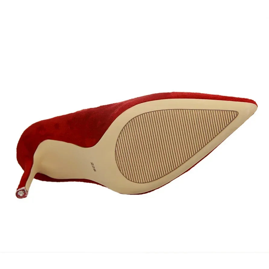 Women Elegant Flock Orange Purple Evening Banquet Party Pumps Lady Classic Scarpin New Burgundy 9cm High Heels Shoes Plus Size