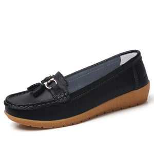 Women Flats Fashion Wedge Genuine Leather Ballerina Shoes Women Slip On Nurse Shoes Moccasins Breathable Shoes Female Plus Size