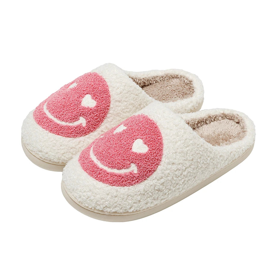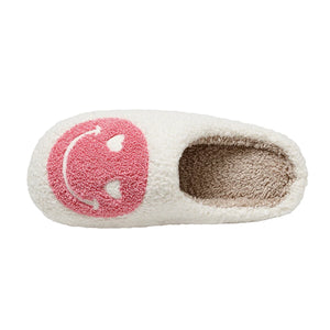 Women Home Winter Slippers Smile Face Heart Eye Style Fluffy House Cute Print Gift Fleece Flat Ladies Indoor HouseShoes