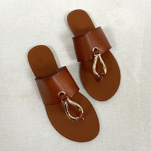 Women Leather Summer Sandals Shoes Retro design Thin Straps Open Toe Beach Slides Flat with Plus Size 41 Female Footwear