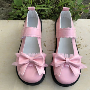 Women Lolita Shoes Kawaii Japanese Style Lace Patchwork Bow Hook Loop Mary Janes Girls Students shoes Solid Footwear