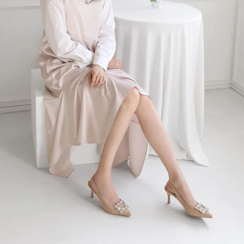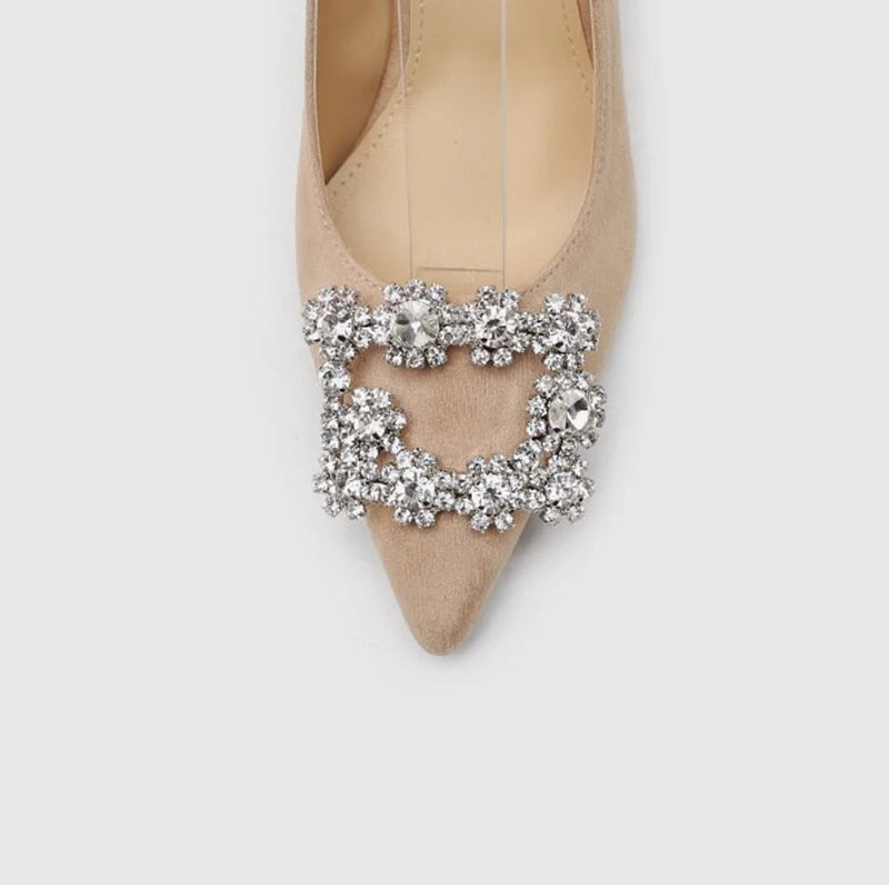 Women Pumps Fashion Ladies Rhinestone High Heels Shoes Soft Leather Heels Shoes Woman Pointed Toe Non-slip Brand Plus Size DE