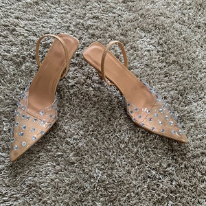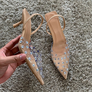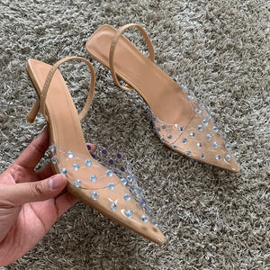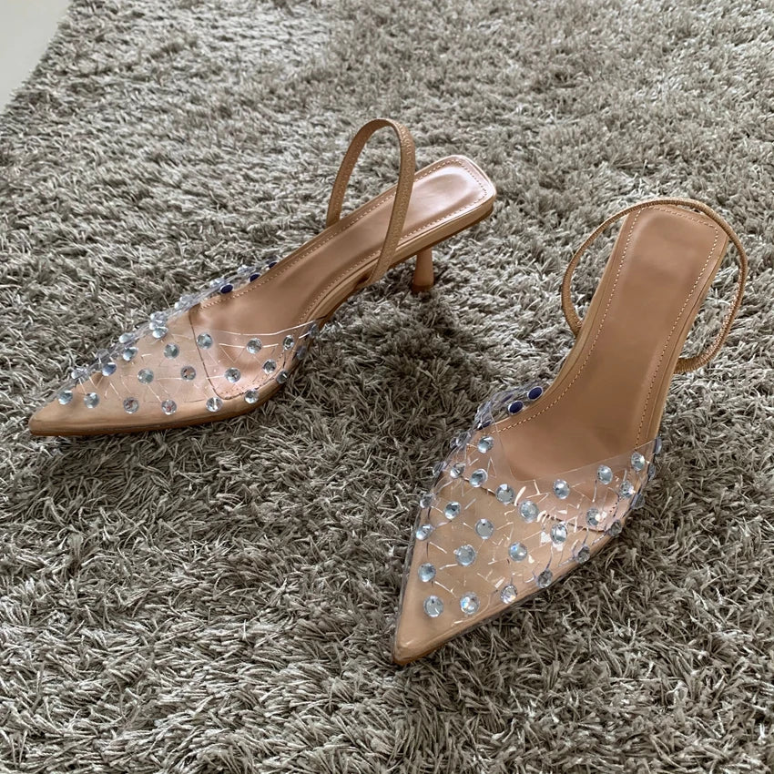 Women PVC Transparent Diamond High Heels Sexy Pointed Toe Slingback Heeled Shoes Pumps Female Party Heels Sandals Shoes