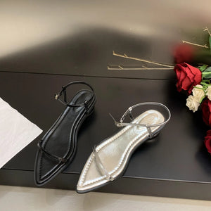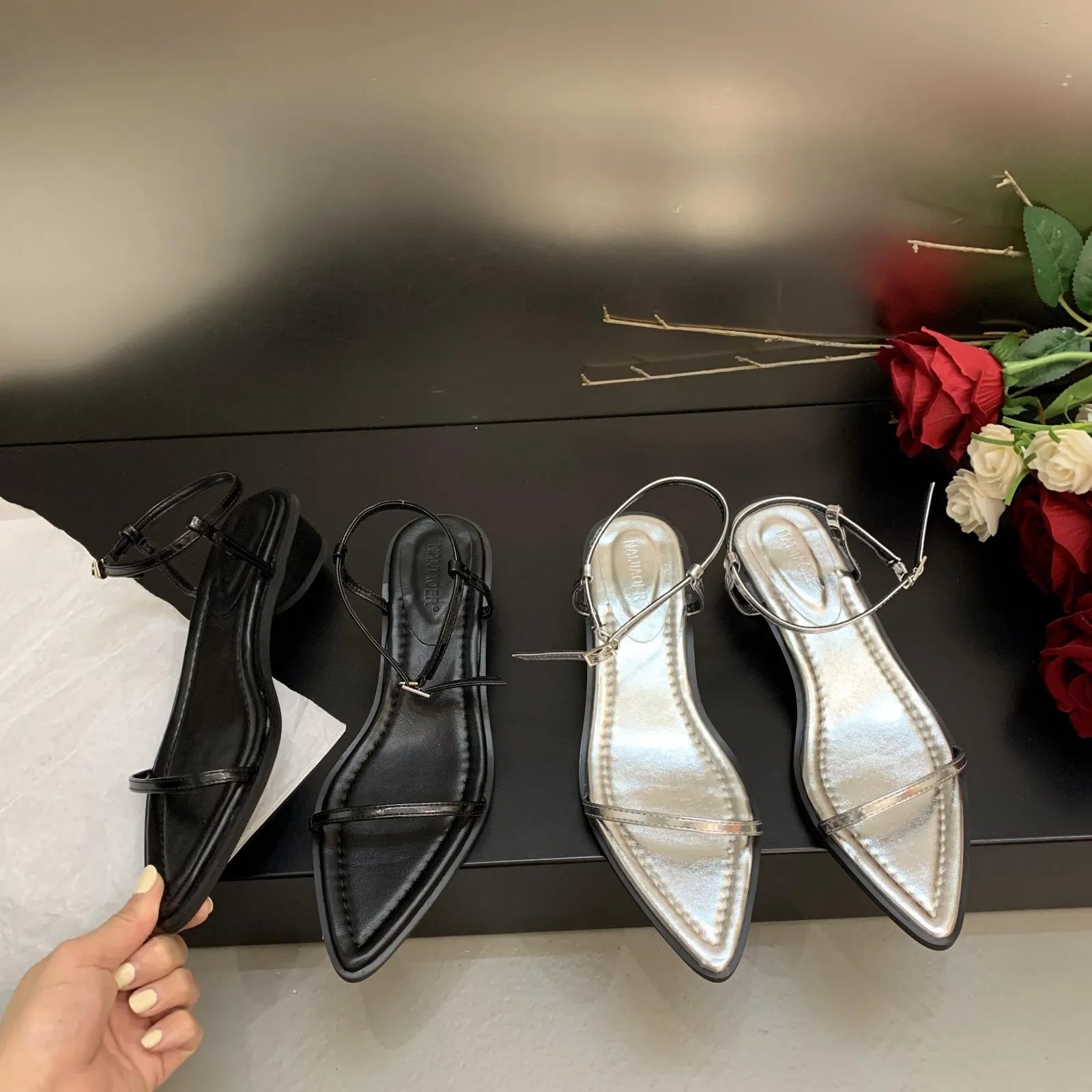Women Sandals 2024 Summer New Fashion Pointed Toe High Heels Ladies Fashion Banquet Dress Low Heel Designer Women Sandals
