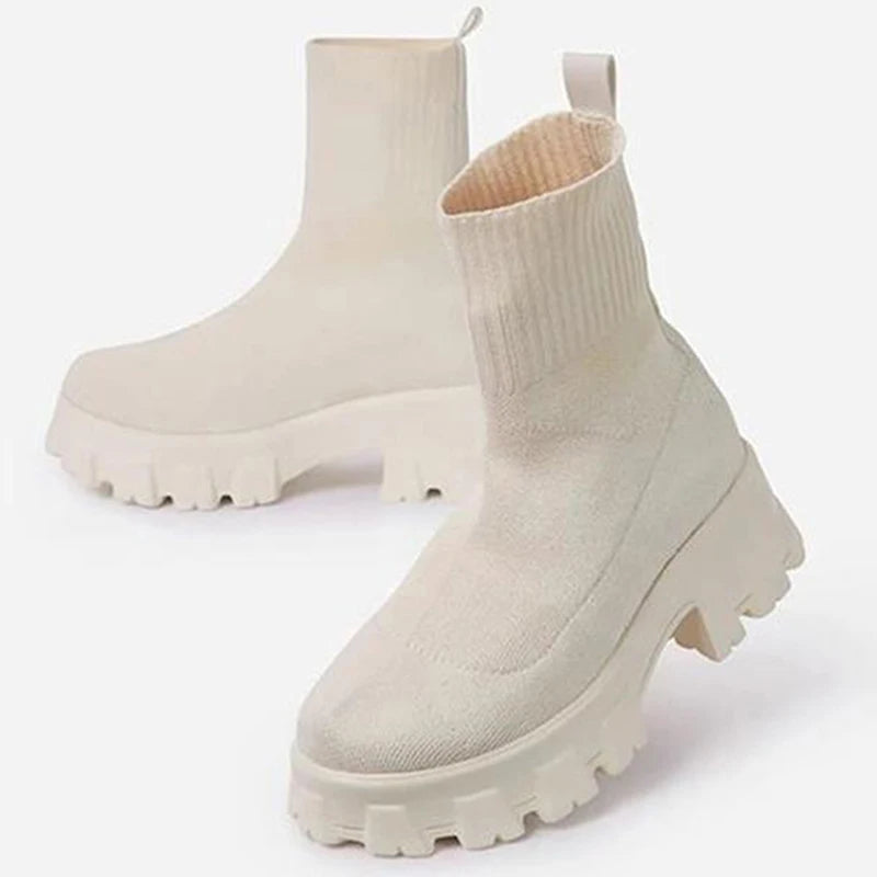 Women Shoes Stylish Women's Sneakers With Platform Vulcanize Shoes For Women Heels Casual Sneakers Stretch Fabric White Shoes