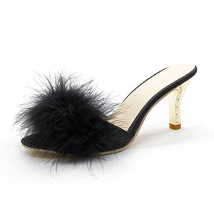 Women Slippers Summer 2022 New Fashion Hairy Stiletto Sandals Slippers Women Word Drag Open Toe Wear High Heel Slippers Women