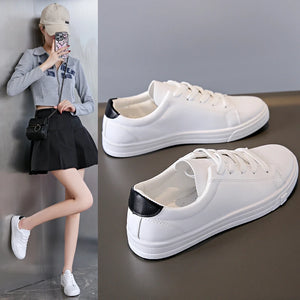 Women Sneakers Breathable Students Casual Sports Shoes Girl Flat Leather Pu White Shoes Woman Vulcanize Shoes
