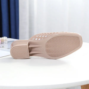 Women Summer Shoes Offer Casual Slip-on Square Toe Medium Heel Slippers Sandals Woman Beach Shoes Zapatos De Mujer