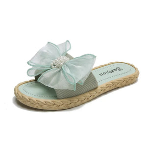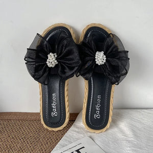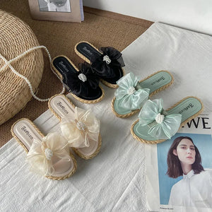 Women Summer Slippers Online Celebrity Slippers Ins New Joker Korean Fairy Wind Mesh Bow Word Drag Breathable Wear-resistant