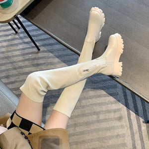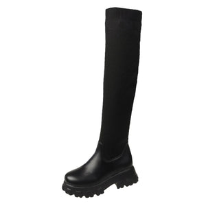 Women Thick Sole Boots 202 Autumn Winter Breathable Knitting Sock Ladies Thigh High Boots Stretch Round Toe Shoes Plus Size 43