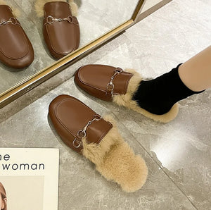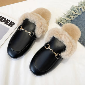 Women Thicken Plush Fur Slippers 2024 Winter warm Slip on Chunky Loafers Mules chinelos Woman Thick Bottom Cotton Flip Flops