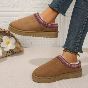 Women Warm Suede Snow Boots Autumn Winter Woman Slip on Platform Boats Close Toe Hair Half Slipper Female Cotton Shoes