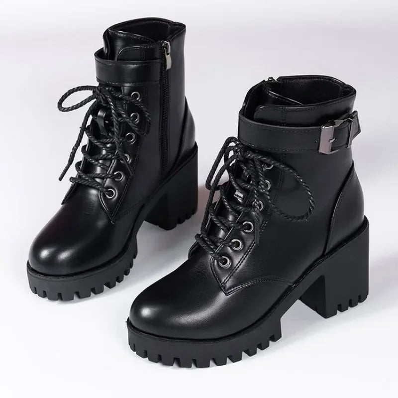 Women's Boots 2024 New Lace Up Boots for Women Fashion Knight Boots Women Round Head Chunky Heel Female