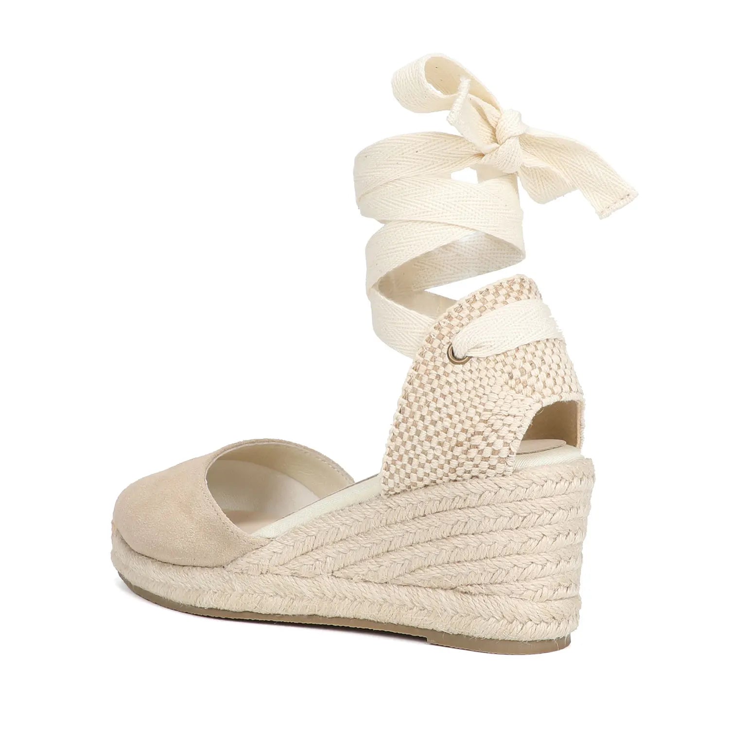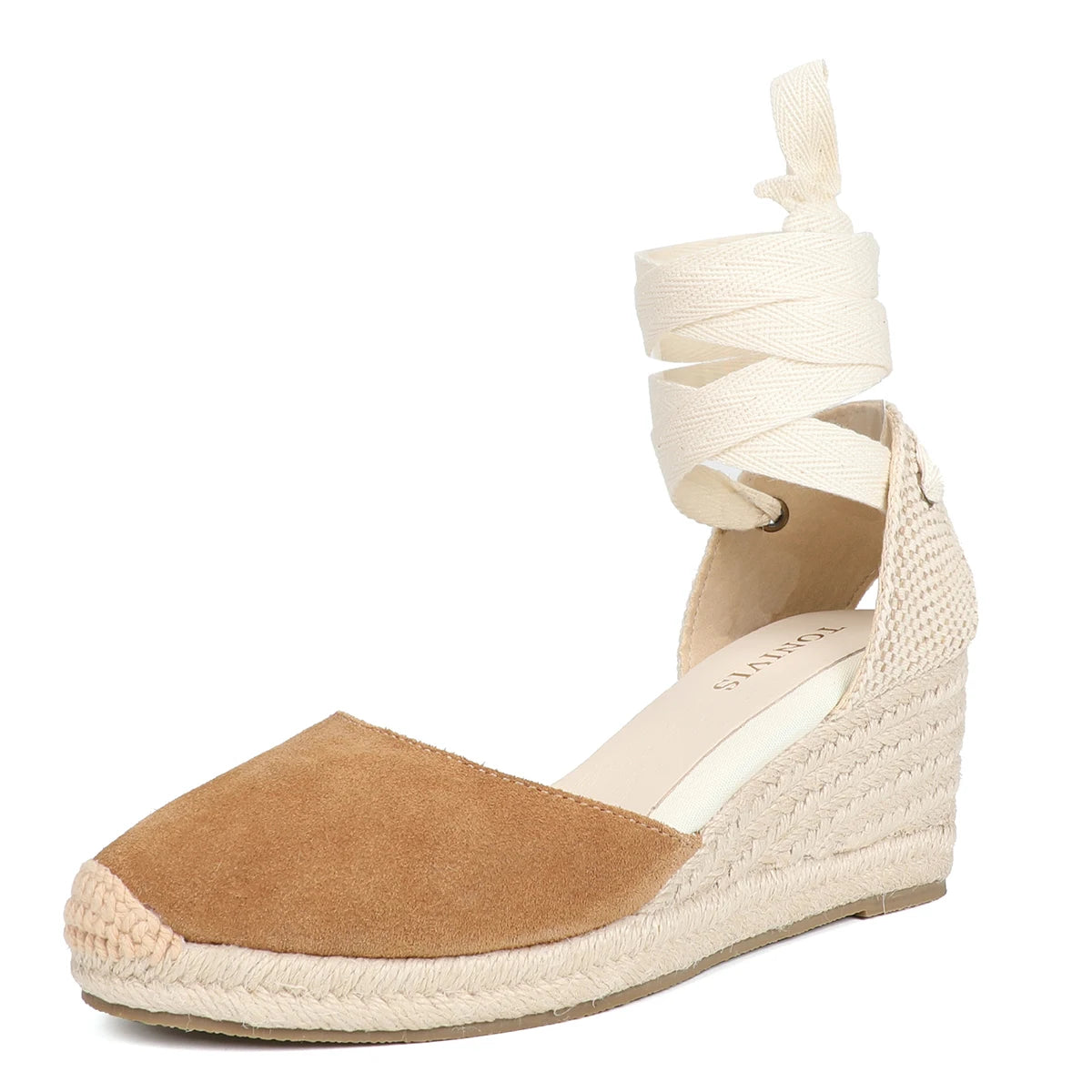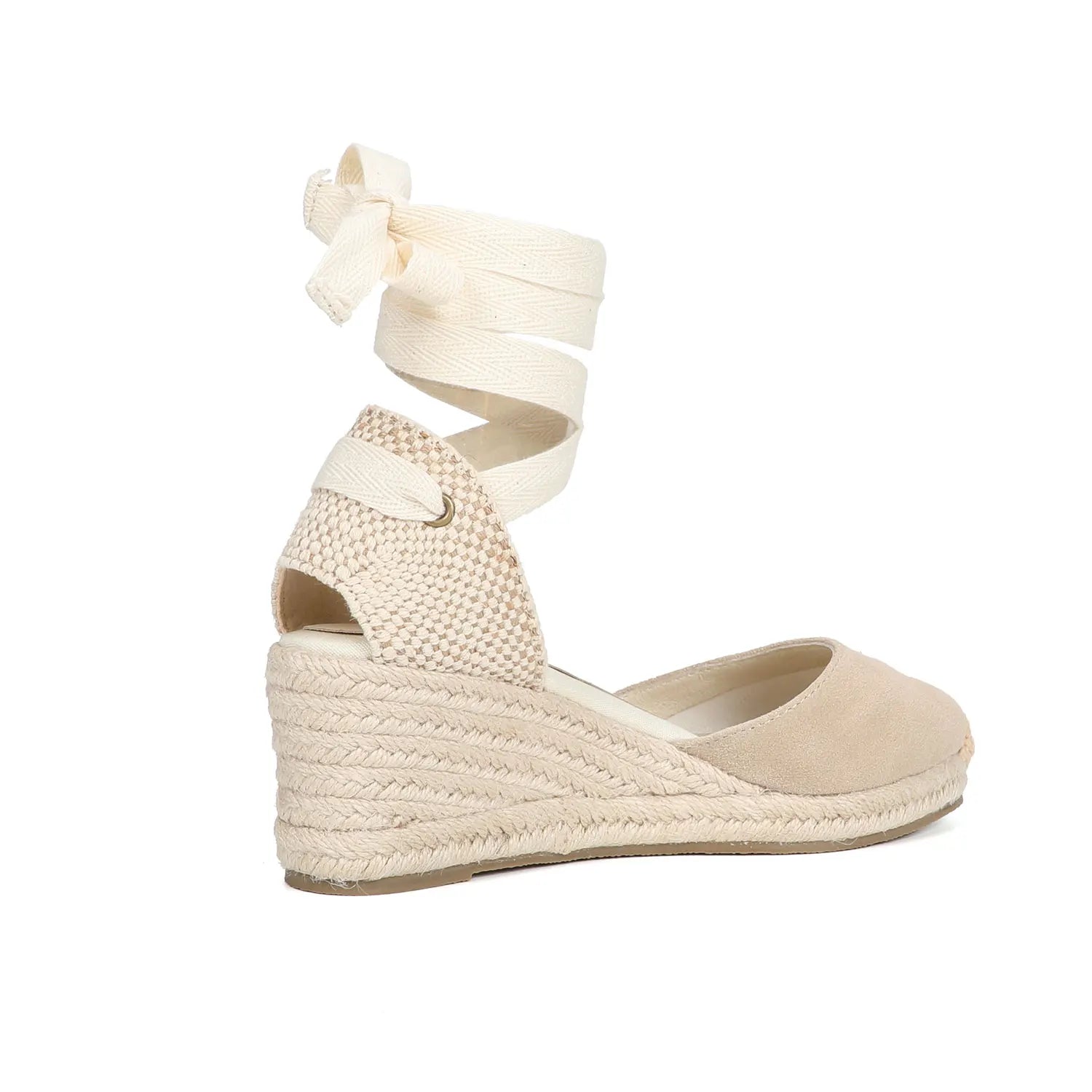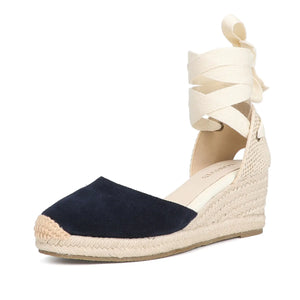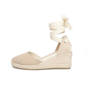 Women's Cow Suede Wedge Sandals with Ankle Strap, Casual Lace-up Platform Shoes - Comfortable and Stylish for Everyday Wear
