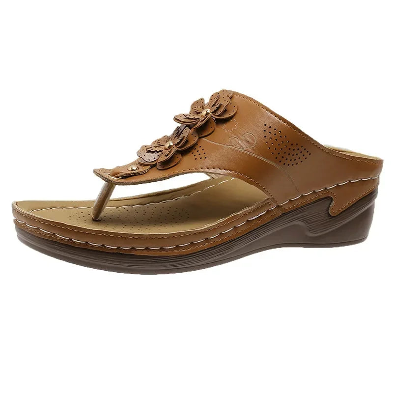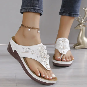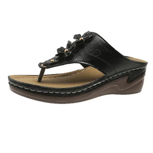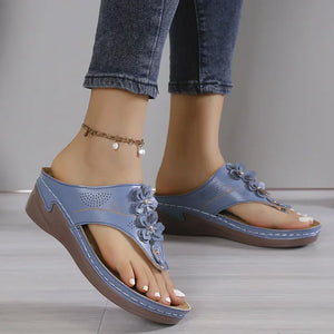 Women's Floral Retro Flip Flops New Summer Fashion Roman Slope Heel Non Slip Sandals Slippers Outdoor Beach Casual Shoes